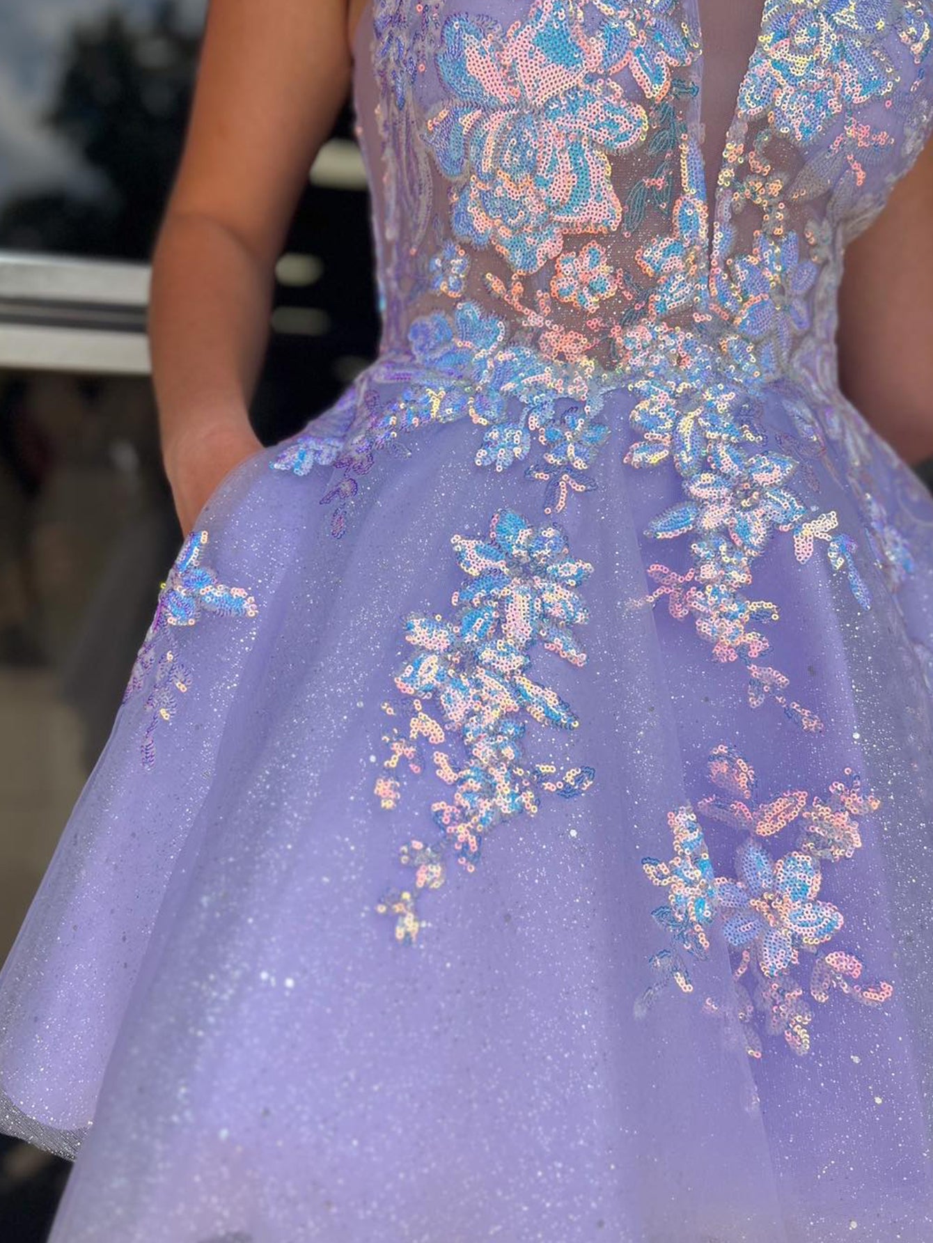 A-Line Orange V Neck Applique Short Homecoming Dress Formal Dresses