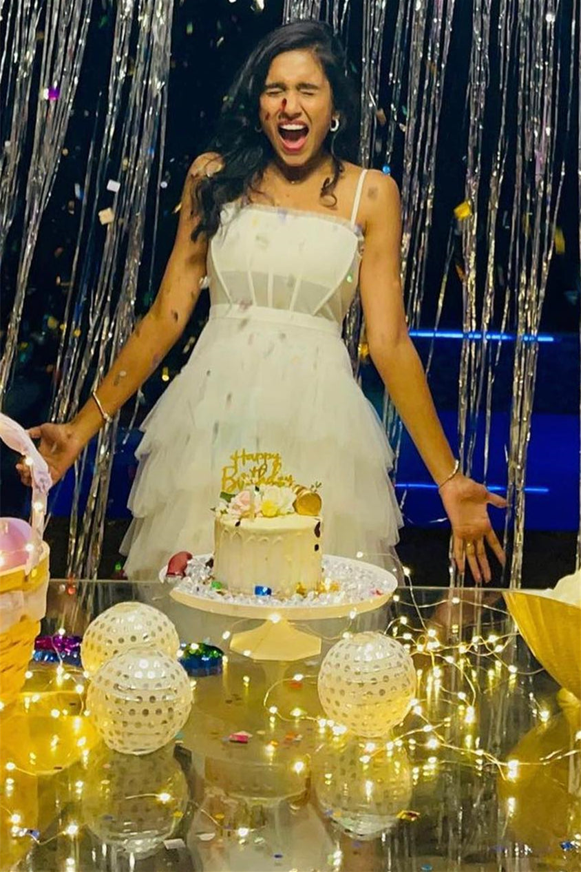 White Straps Multi-Layers Ruffled Tulle Homecoming Dress,Semi Formal Dresses Short